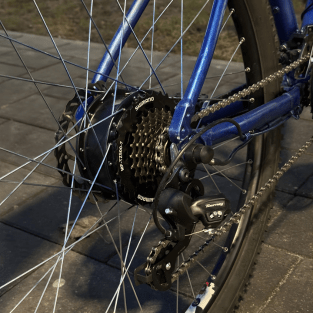 asyst (wspomaganie pedałowania), jazda czysto elektryczna (throttle / full electric), oraz normalny tryb rowerowy (z przerzutkami 21 biegów, pedałowanie ręczne + wspomaganie)